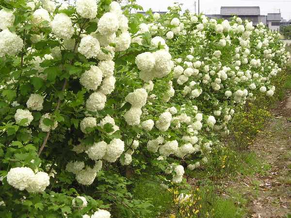 にぎりこぶしより大きい手毬状の花を咲かせる。あまり大きくならず樹高2.0m程度までである。
